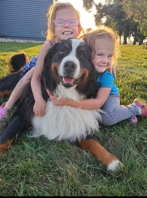 Welcome to BB Berners, located in Northwest, Iowa. We fell in love with the Bernese Mountain dog because of their docile personality and stunning colors. Our dogs are a part of our family and are free to roam our 10 acre acreage daily. Because we strive to raise healthy, quality bernese for other families to enjoy, our dogs are genetic tested for DM and VW, OFA hip checked, vet checked as well as AKC registered. Our puppies are well socialized and handled by our children daily. The puppies also come vet/health checked, health guaranteed, wormed and vaccinated, with pedigree information and their own paw print birth certificates. Whether you are just visiting or looking for your next companion, please enjoy the photos and feel free to reach out for more information!